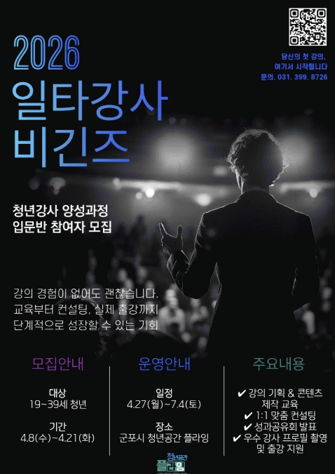[NWS¹æ¼Û=Çѽ¸ñ ±âÀÚ]±ºÆ÷½Ã û³â°ø°£ ÇöóÀ×(¼¾ÅÍÀå Á¶³²)Àº °­ÀÇ ¿ª·®À» °®Ãá û³âÀ» ¹ß±¼Çϰí Àü¹® °­»ç·Î ¼ºÀå½ÃŰ´Â ¡®2026³â ÀÏŸ°­»ç ºñ±äÁÀÇ ÀÔ¹®¹Ý Âü¿©ÀÚ¸¦ ¿À´Â 21ÀϱîÁö ¸ðÁýÇÑ´Ù. ¡®ÀÏŸ°­»ç ºñ±äÁ´Â Áö³­ÇغÎÅÍ ¿î¡¦