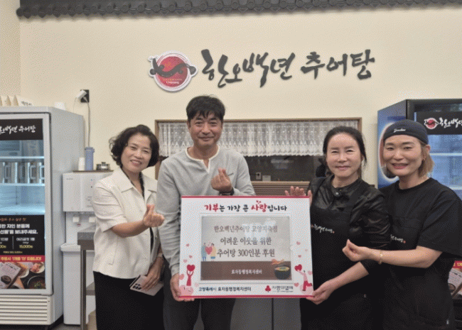[NWS¹æ¼Û=Çѽ¸ñ ±âÀÚ]°í¾çƯ·Ê½Ã ´ö¾ç±¸ È¿ÀÚµ¿Àº Áö³­ 24ÀÏ, °ü³» À½½ÄÁ¡ ¡®ÇÑ¿À¹é³âÃß¾îÅÁ¡¯À¸·ÎºÎÅÍ Ãß¾îÅÁ 300°³¸¦ ±âºÎ¹Þ¾Ò´Ù°í ÀüÇß´Ù. ÇÑ¿À¹é³âÃß¾îÅÁÀº ¸íÀýÀ» ¾ÕµÎ°í ½Ä»ç Áغñ¿¡ ¾î·Á¿òÀ» °Þ´Â Ãë¾à°èÃþÀÇ °Ç°­À» µ½°í, µû¶æ¡¦