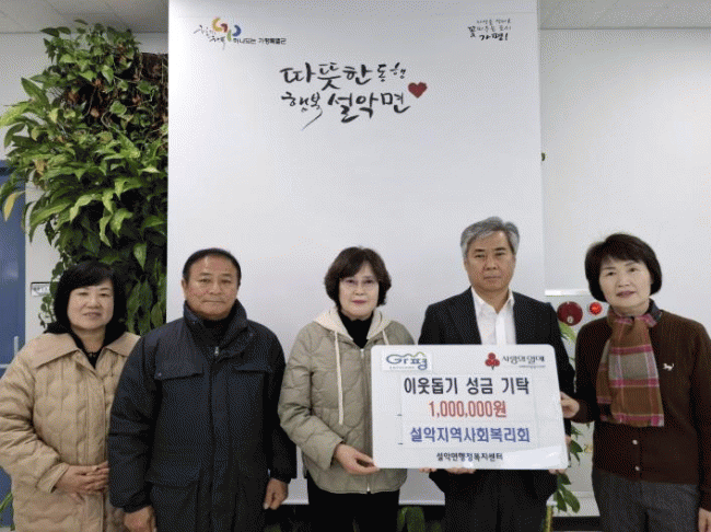 [NWS¹æ¼Û=Çѽ¸ñ ±âÀÚ]°¡Æò±º ¼³¾ÇÁö¿ª»çȸº¹¸®È¸ ±èÁø¿­ ȸÀå µîÀº 22ÀÏ ¼³¾Ç¸é ÇàÁ¤º¹Áö¼¾Å͸¦ ¹æ¹®¿¡ ÀÌ¿ôµ½±â ¼º±Ý 100¸¸¿øÀ» ±âŹÇß´Ù. ¼³¾ÇÁö¿ª»çȸº¹¸®È¸´Â 40³âÀüºÎÅÍ À̾î¿Â ´Üü·Î ¾î¸°ÀÌ, ÁÖºÎ, ¾î¸£½ÅµéÀ» À§ÇÑ ÇÁ·Î±×·¥ Ȱ¡¦