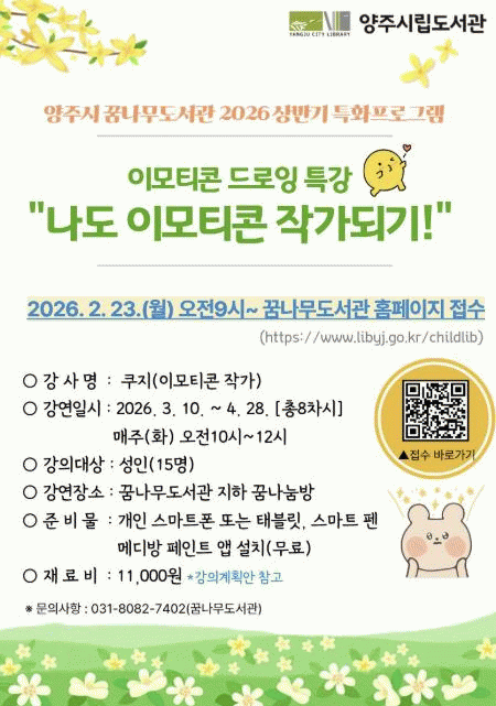[»çȸ] ¾çÁֽà ²Þ³ª¹«µµ¼­°ü, 2026³â Ưȭ»ç¾÷ 'À̸ðƼÄÜ µå·ÎÀ× Æ¯°­' Âü¿©ÀÚ ¸ðÁý |2026. 02.10