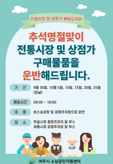 [NWS¹æ¼Û=ÇãÀº¼­ ±âÀÚ]¿©Áֽô ¿©Áֽüһó°øÀÎÁö¿ø¼¾ÅÍ ÁÖ°üÀ¸·Î ´Ù°¡¿À´Â Ãß¼® ¸íÀýÀ» ¸ÂÀÌÇÏ¿© ÀüÅë½ÃÀå°ú »óÁ¡°¡¸¦ ã´Â ½Ã¹ÎµéÀÇ ÆíÀǸ¦ µ½°í ÀüÅë½ÃÀå Ȱ¼ºÈ­¸¦ À§ÇØ ¡®ÀüÅë½ÃÀå ¹× »óÁ¡°¡ ¹è¼Û µµ¿ì¹Ì¡¯ ¼­ºñ½º¸¦ ¿î¿µÇÑ´Ù. ÀÌ¡¦