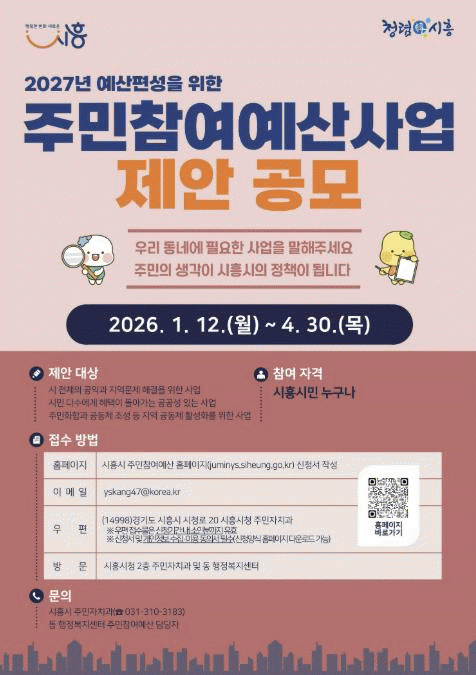 [»çȸ] "¿ì¸® µ¿³×¿¡ ²À ÇÊ¿äÇÑ »ç¾÷Àº?" ½ÃÈï½Ã, ÁÖ¹ÎÂü¿©¿¹»ê Á¦¾È»ç¾÷ °ø¸ð |2026. 01.15