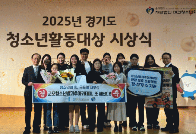 [NWS¹æ¼Û=Çѽ¸ñ ±âÀÚ](Àç)±ºÆ÷½Ãû¼Ò³âÀç´Ü ±ºÆ÷½Ãû¼Ò³â¼ö·Ã°ü û¼Ò³â¹æ°úÈľÆÄ«µ¥¹Ì°¡ ÃßÁøÇÑ È¯°æº¸È£ ÇÁ·ÎÁ§Æ® ¡®Ã»¡¤Á¤¡¯ÀÌ °æ±âµµÃ»¼Ò³âȰµ¿ÁøÈï¼¾ÅÍ¿¡¼­ ÁÖ°üÇÑ 2025³â ȯ°æº¸È£ ÇÁ·ÎÁ§Æ® ¡®Ã»¡¤Á¤¡¯ ÃÖ¿ì¼ö»ó(Çѱ¹Ã»¼Ò³âȰµ¿ÁøÈ