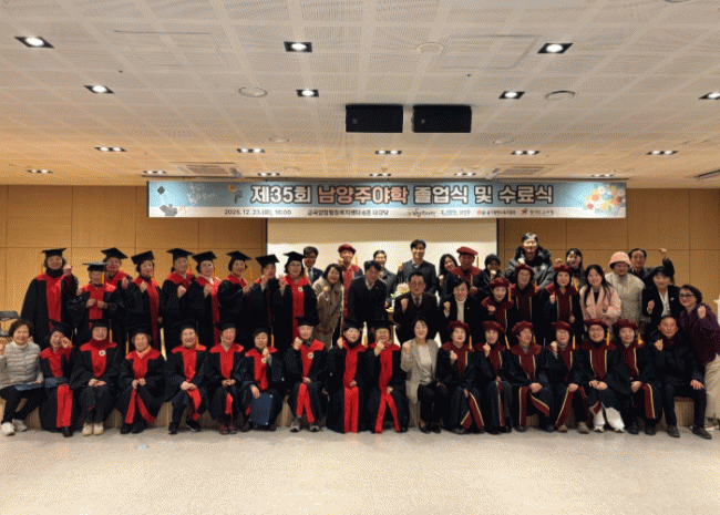 [NWS¹æ¼Û=Çѽ¸ñ ±âÀÚ]³²¾çÁֽô 23ÀÏ ±Ý°î¾çÁ¤ÇàÁ¤º¹Áö¼¾ÅÍ 6Ãþ ´Ù¸ñÀû°ø¿¬Àå¿¡¼­ ¡®Á¦35ȸ ³²¾çÁÖ¾ßÇÐ Á¹¾÷½Ä¡¯À» °³ÃÖÇß´Ù. ¡®³²¾çÁÖ¾ßÇС¯Àº 1989³â ¼³¸³µÈ ¼ºÀι®ÇØ ±³À°±â°üÀÌÀÚ Æò»ýÇнÀ ÇÁ·Î±×·¥À¸·Î, ÇнÀ ±âȸ¸¦ ³õÄ£ ¼ºÀÎÀ»¡¦