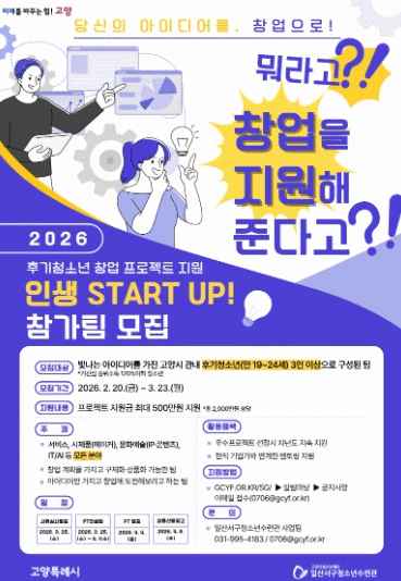 [»çȸ] °í¾ç½Ã, 2026³â Èıâû¼Ò³â â¾÷ ÇÁ·ÎÁ§Æ® ¡®Àλý½ºÅ¸Æ®¾÷¡¯ Âü°¡ÀÚ ¸ðÁý |2026. 03.04