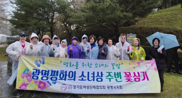 [NWS¹æ¼Û=Çѽ¸ñ ±âÀÚ]±¤¸í½Ã ¿©¼º´ÜüÇùÀÇȸ´Â 10ÀÏ ±¤¸íµ¿±¼ ÀÔ±¸¿¡ ¼³Ä¡µÈ ÆòÈ­ÀÇ ¼Ò³à»ó ÁÖº¯¿¡ º½²É 300±×·ç¸¦ ½É´Â Çà»ç¸¦ °³ÃÖÇß´Ù. À̹ø Çà»ç´Â ÀϺ»±º À§¾ÈºÎ ÇÇÇØÀÚµéÀÇ ¾ÆÇÄÀ» ±â¾ïÇϰí, ¿ª»çÀû Áø½ÇÀ» µÇ»õ±â¸ç ÆòÈ­¿Í Àαǡ¦