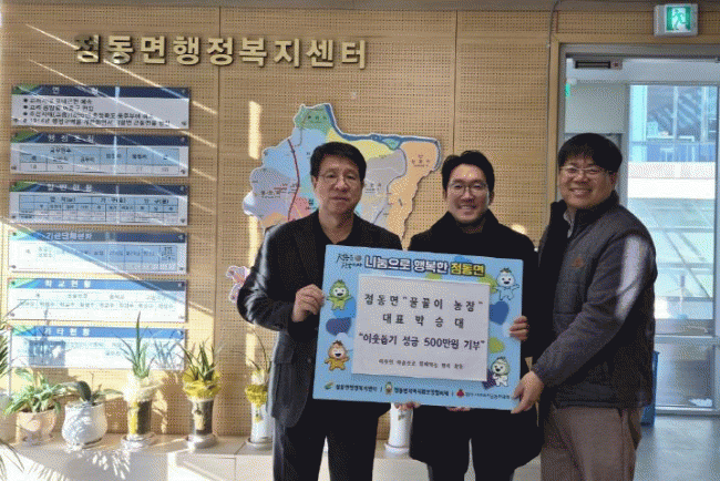 [NWS¹æ¼Û=Çѽ¸ñ ±âÀÚ]Á¡µ¿¸é °ü³» ²Ü²ÜÀÌ ³óÀå ¹Ú½Â´ë ´ëÇ¥°¡ Áö³­ 12¿ù 22ÀÏ, ¿¬¸»À» ¸Â¾Æ ÀÌ¿ô»ç¶û ¼º±Ý 500¸¸¿øÀ» °æ±â»çȸº¹Áö°øµ¿¸ð±Ýȸ¸¦ ÅëÇØ Á¡µ¿¸é ÁöÁ¤±âŹÀ¸·Î Á¡µ¿¸éÇàÁ¤º¹Áö¼¾ÅÍ¿¡ Àü´ÞÇϸç Áö¿ª»çȸ¿¡ µû¶æÇÑ °¨µ¿À» ÀüÇß¡¦