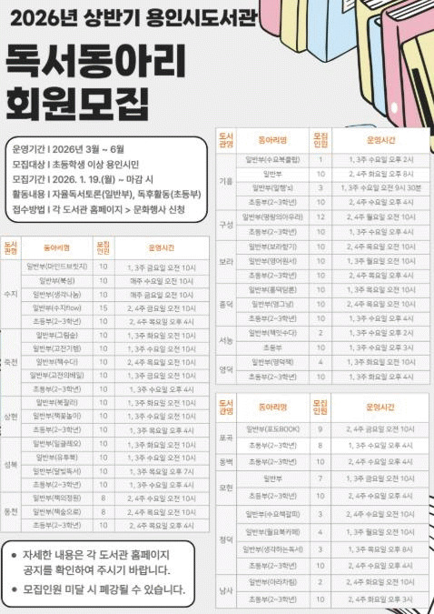 [»çȸ] ¿ëÀÎÆ¯·Ê½Ã, »ó¹Ý±â µ¶¼­µ¿¾Æ¸® ȸ¿ø 409¸í ¸ðÁý |2026. 01.06