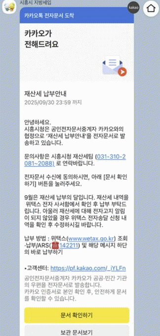 [»çȸ] ½ÃÈï½Ã 'īī¿ÀÅåÀ¸·Î Áö¹æ¼¼ È®ÀÎ', ¸ð¹ÙÀÏ ÀüÀÚ°íÁö ¼­ºñ½º µµÀÔ |2025. 09.23