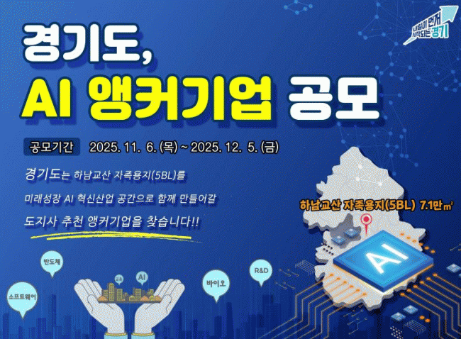 [NWS¹æ¼Û=Çѽ¸ñ ±âÀÚ]°æ±âµµ°¡ Çϳ²±³»ê ½Åµµ½Ã¸¦ ÀΰøÁö´É(AI) »ê¾÷ÀÇ ÇÙ½É °ÅÁ¡À¸·Î Á¶¼ºÇϱâ À§ÇØ ÀΰøÁö´É ¼±µµ(¾ÞÄ¿)±â¾÷À» À¯Ä¡Çϱâ·Î Çϰí 6ÀϺÎÅÍ 12¿ù 5ÀϱîÁö °ø¸ð¸¦ ÁøÇàÇÑ´Ù. À̹ø °ø¸ð´Â °æ±âµµ°¡ Áö³­ 1¿ù ¡®ÅÃÁö°³¹ß ¾÷¡¦