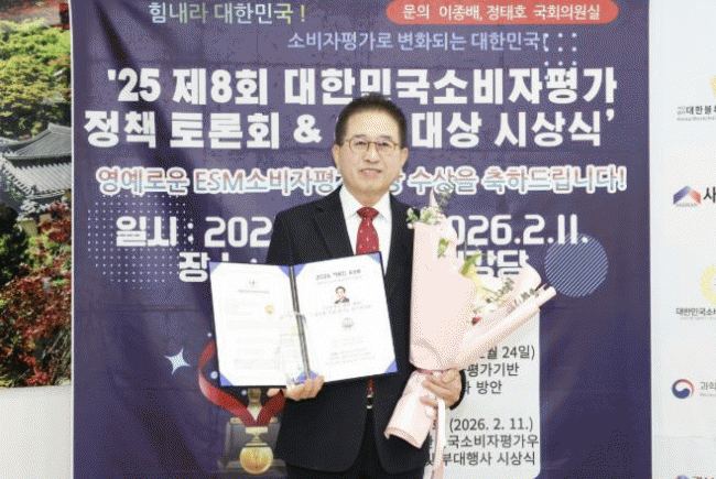 [NWS¹æ¼Û=Çѽ¸ñ ±âÀÚ]Áö³­ 11ÀÏ, ±¹È¸ µµ¼­°ü¿¡¼­ ¿­¸° 2026 Á¦8ȸ ESM´ëÇѹα¹¼ÒºñÀÚÆò°¡¿ì¼ö´ë»ó Á¤Ã¥Åä·Ðȸ ¹× ½Ã»ó½Ä¿¡¼­ ±¤ÁÖ½ÃÀÇȸ Çã°æÇà ÀÇÀåÀÌ Áö¹æÀÚÄ¡/ÇàÁ¤ ºÎ¹® ´ë»óÀ» ¼ö»óÇß´Ù. °ü°èÀÚ¿¡ µû¸£¸é ´ëÇѹα¹¼ÒºñÀÚÆò°¡¿ì¼ö´ë¡¦