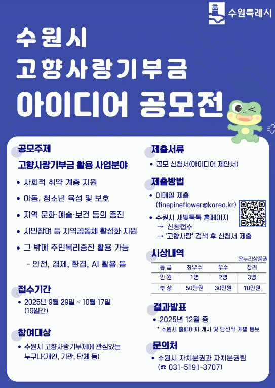 [»çȸ] ¼ö¿øÆ¯·Ê½Ã, '°íÇâ»ç¶û ±âºÎ±Ý Ȱ¿ë ¾ÆÀ̵ð¾î °ø¸ðÀü' °³ÃÖ |2025. 09.30