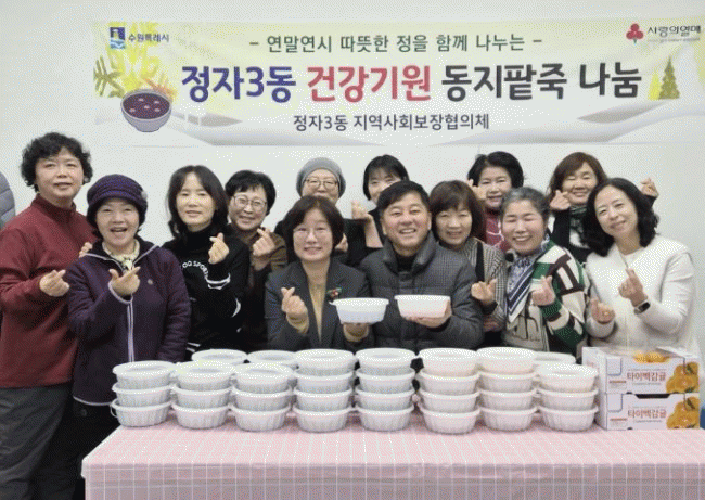 [NWS¹æ¼Û=Çѽ¸ñ ±âÀÚ]¼ö¿ø½Ã Àå¾È±¸ Á¤ÀÚ3µ¿Àº Áö³­ 22ÀÏ µ¿Áö¸¦ ¸Â¾Æ Áö¿ª ³» Àú¼Òµæ ¾î¸£½Å 20°¡±¸¸¦ ´ë»óÀ¸·Î Á¤¼ºÀÌ ´ã±ä µ¿ÁöÆÏÁ× ³ª´® Çà»ç¸¦ ÁøÇàÇß´Ù. À̹ø Çà»ç´Â Á¤ÀÚ3µ¿ Áö¿ª»çȸº¸ÀåÇùÀÇü À§¿øµéÀÌ ÀÚ¹ßÀûÀ¸·Î Âü¿©ÇØ Á÷Á¢¡¦