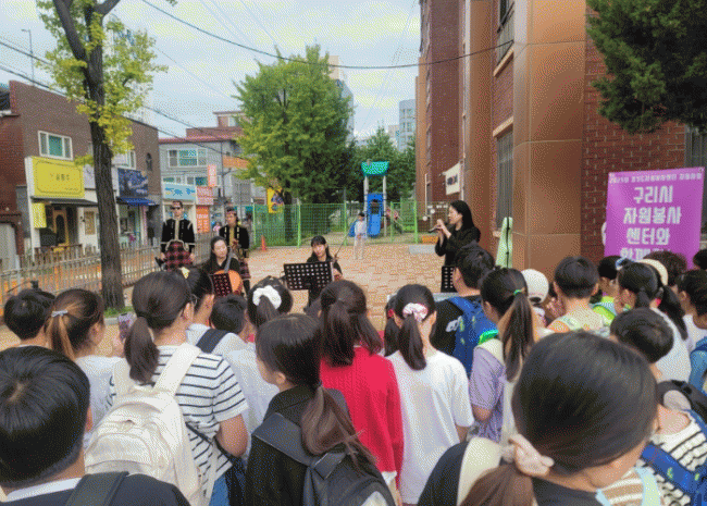 [NWS¹æ¼Û=Çѽ¸ñ ±âÀÚ]»ç´Ü¹ýÀÎ ±¸¸®½ÃÀÚ¿øºÀ»ç¼¾ÅÍ´Â 9¿ù 18ÀÏ ±³¹®ÃʵîÇб³¿¡¼­ 'µî±·±æ ²Þ²Ù´Â À½¾Ç´ë' ¼¼ ¹øÂ° °ø¿¬À» °³ÃÖÇß´Ù. 'µî±·±æ ²Þ²Ù´Â À½¾Ç´ë'´Â Àç´É±âºÎ ºÀ»ç´ÜüÀÇ Å¬·¡½Ä °ø¿¬À¸·Î, ¾Æµ¿µéÀÌ µî±·±æ¿¡ ¾Æ¸§´Ù¿î À½¾ÇÀ»¡¦