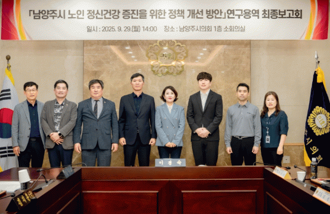 [Áö¿ªÁ¤Ä¡] ³²¾çÁÖ½ÃÀÇȸ, '³²¾çÁֽà ³ëÀÎ Á¤½Å°Ç°­ ÁõÁøÀ» À§ÇÑ Á¤Ã¥ °³¼± ¹æ¾È'¿¬±¸¿ë¿ª ÃÖÁ¾º¸°íȸ °³ÃÖ |2025. 09.29