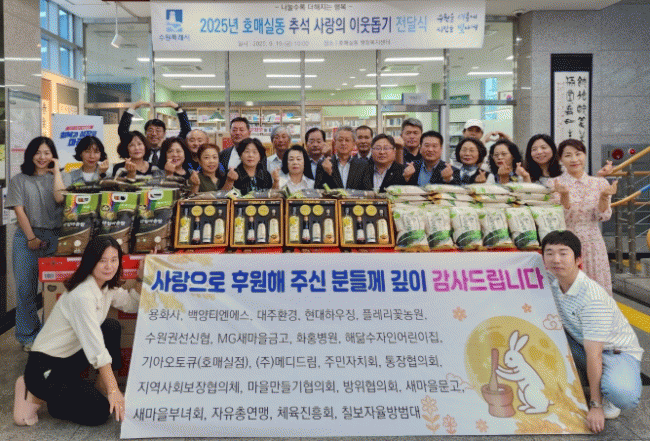 [NWS¹æ¼Û=Çѽ¸ñ ±âÀÚ]¼ö¿ø½Ã ±Ç¼±±¸ È£¸Å½Çµ¿ ÇàÁ¤º¹Áö¼¾ÅÍ¿¡¼­´Â Áö³­ 19ÀÏ, 2025³â Ãß¼® ¸íÀýÀ» ¸ÂÀÌÇÏ¿© ÀÌ¿ôµ½±â Àü´Þ½ÄÀ» ÁøÇàÇß´Ù. À̳¯ Àü´Þ½Ä¿¡¼­´Â È£¸Å½Çµ¿ °ü³» ÁÖ¹ÎÀÚÄ¡´Üü¿Í ±â°ü, °³ÀÎ ÈÄ¿øÂü¿©ÀÚ µî 20°³¼ÒÀÇ ÈÄ¿øÀڵ顦