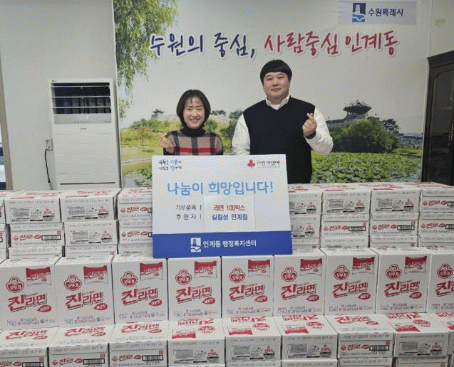 [NWS¹æ¼Û=Çѽ¸ñ ±âÀÚ]Áö³­ 9ÀÏ, ¼ö¿ø½Ã ÆÈ´Þ±¸ Áöµ¿ ¼ÒÀç Áß½Ä´ç ¹é¸®ÇâÀº ¼³ ¸íÀýÀ» ¸Â¾Æ Áöµ¿ ÇàÁ¤º¹Áö¼¾Å͸¦ ¹æ¹®ÇØ ¶ó¸é 100¹Ú½º¸¦ Àü´ÞÇϸç ÀÌ¿ô»ç¶ûÀ» ½ÇõÇß´Ù. ¹é¸®ÇâÀº ¸Å³â ¼³°ú Ãß¼® ¸íÀý¸¶´Ù ¶ó¸é ÈÄ¿øÀ» À̾î¿À¸ç Áö¿ª»çȸ¡¦