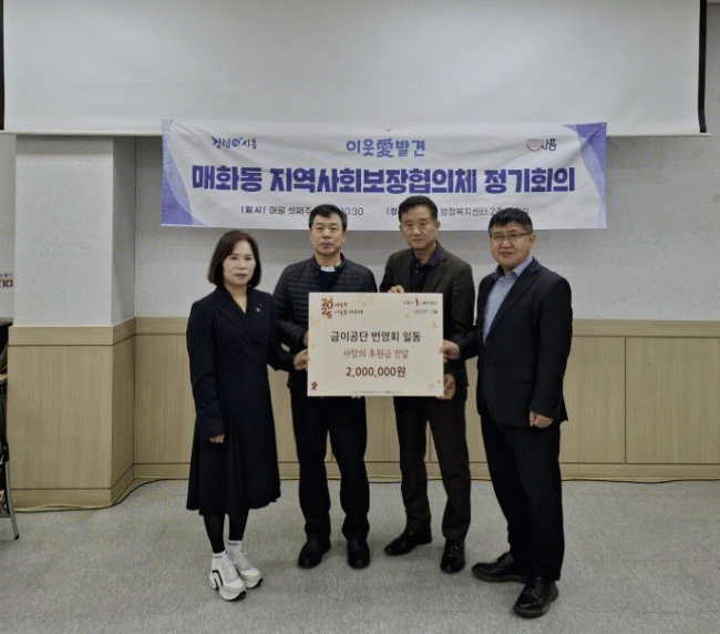 [NWS¹æ¼Û=Çѽ¸ñ ±âÀÚ]±ÝÀ̰ø´Ü ¹ø¿µÈ¸¿Í ÇϿ콺¾÷ÀÌ ¿¬¸»¿¬½Ã¸¦ ¸Â¾Æ ¸ÅÈ­µ¿ Ãë¾à°èÃþÀ» À§ÇØ Áö³­ 12¿ù 19ÀÏ ¸ÅÈ­µ¿ ÇàÁ¤º¹Áö¼¾Å͸¦ ã¾Æ ÈÄ¿ø±Ý°ú ÈÄ¿øÇ°À» Àü´ÞÇϸç Áö¿ª»çȸ ³ª´®¿¡ µ¿ÂüÇß´Ù. ±ÝÀ̰ø´Ü ¹ø¿µÈ¸´Â Áö³­ 12¿ù 19ÀÏ °ü¡¦
