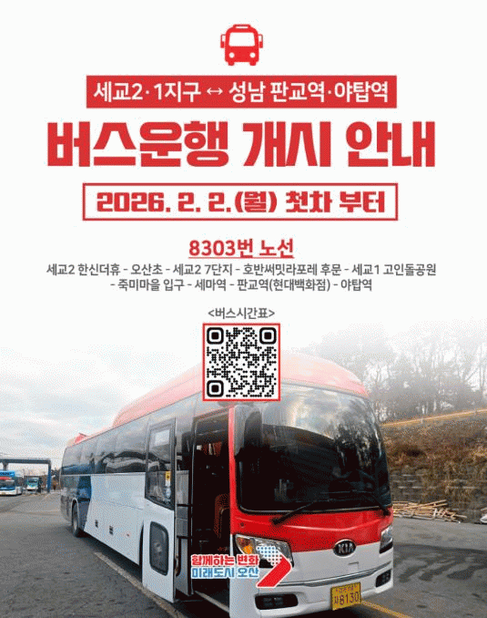 [»çȸ] ¿À»ê ¼¼±³1¡¤2Áö±¸-¼º³² ÀÕ´Â 8303¹ø Á÷Çà¹ö½º ¿îÇà |2026. 01.14