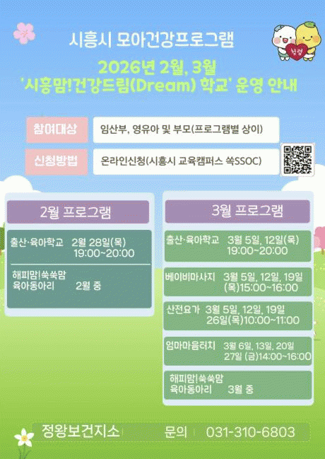 [NWS¹æ¼Û=Çѽ¸ñ ±âÀÚ]½ÃÈï½Ã´Â ¿¹ºñºÎºÎ¿Í ÀÓ½ÅÇÑ ºÎºÎ¸¦ ´ë»óÀ¸·Î °Ç°­ÇÑ ÀӽŰú ÇູÇÑ Ãâ»êÀ» À§ÇÑ À¯¿ëÇÑ Á¤º¸¸¦ Á¦°øÇϰí, ¸ð¾Æ(Ù½ä®)ÀÇ °Ç°­ÁõÁøÀ» À§ÇÑ »ó¹Ý±â ÇÁ·Î±×·¥À» 2¿ùºÎÅÍ ¿î¿µÇÑ´Ù. À̹ø ÇÁ·Î±×·¥Àº 2¿ùºÎÅÍ 5¿ù±îÁö Á¤¡¦