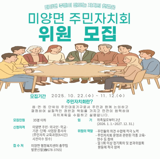 [NWS¹æ¼Û=Çѽ¸ñ ±âÀÚ]Áö³­ 10¿ù 22ÀϺÎÅÍ ¹Ì¾ç¸éÀº ¾È¼º½Ã ÁÖ¹ÎÀÚġȸ ½Ã¹ü½Ç½Ã ¹× ¼³Ä¡¡¤¿î¿µ¿¡ °üÇÑ Á¶·Ê'¿¡ µû¶ó Áö¿ªÀÇ ÀÚÄ¡°èȹÀ» ¼ö¸³ÇÏ°í ½ÇÇàÇÒ ¡®¹Ì¾ç¸é ÁÖ¹ÎÀÚġȸ À§¿ø¡¯À» 11¿ù 12ÀϱîÁö ¸ðÁýÇÑ´Ù. À̹ø ÁÖ¹ÎÀÚġȸ´Â ±âÁ¸¡¦