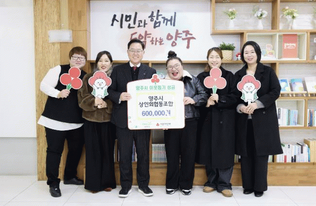 [NWS¹æ¼Û=Çѽ¸ñ ±âÀÚ]¾çÁֽûóÀÎȸÇùµ¿Á¶ÇÕ°¡ Áö³­ 29ÀÏ ¾çÁֽÿ¡ ÀÌ¿ôµ½±â ¼º±Ý 60¸¸ ¿øÀ» ±âŹÇß´Ù. À̹ø ¼º±ÝÀº Áö³­ 11¿ù °í¾Ïµ¿ ¼ÒÀç Ä«Æä¹ê¿¡¼­ ÁøÇàÇÑ ¡®»ó»ý ³ªÀÌÆ® ÆÄƼ¡¯ÀÇ ¿î¿µ ¼öÀͱÝÀ¸·Î, Áö¿ª »óÀεéÀÌ ÀÚ¹ßÀûÀ¸·Î ¶æÀ» ¡¦