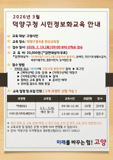 [»çȸ] °í¾ç½Ã ´ö¾ç±¸, Á¦2Â÷ ½Ã¹ÎÁ¤º¸È­±³À° ¼ö°­»ý ¸ðÁý |2026. 02.13