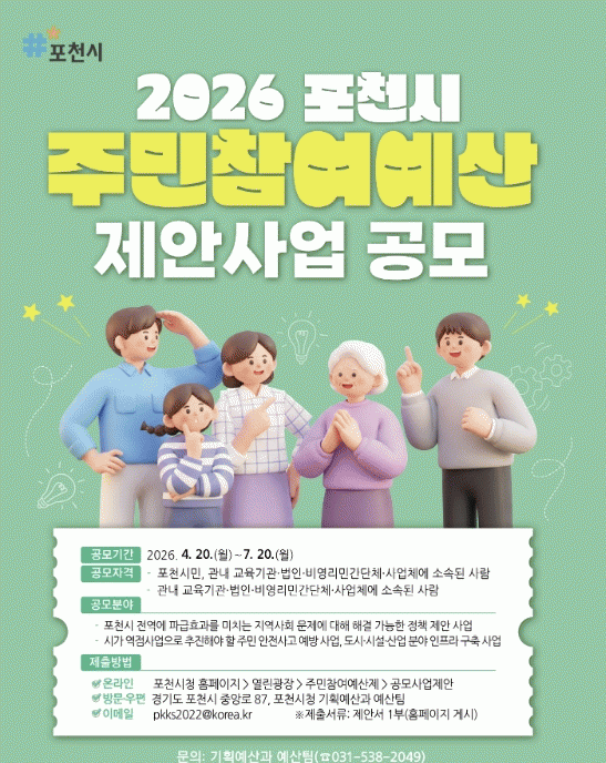 [»çȸ] Æ÷õ½Ã, 34¾ï ¿ø ±Ô¸ð 'ÁÖ¹ÎÂü¿©¿¹»ê °ø¸ðÁ¦¾È»ç¾÷' Á¢¼ö |2026. 04.20