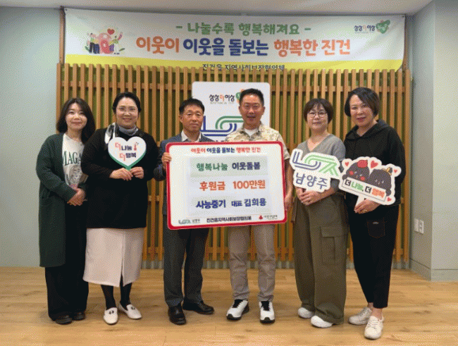[NWS¹æ¼Û=Çѽ¸ñ ±âÀÚ]³²¾çÁֽô 20ÀÏ Áø°ÇÀ¾ ¼ÒÀç »ç´ÉÁß±â(´ëÇ¥ ±èÈñ¿ë)°¡ Ãë¾à°èÃþ Áö¿øÀ» À§ÇÑ ÈÄ¿ø±Ý 100¸¸ ¿øÀ» Àü´ÞÇÏ¸ç ´©Àû ÈÄ¿ø±Ý 1,000¸¸ ¿øÀ» ´Þ¼ºÇß´Ù°í ¹àÇû´Ù. À̹ø ÈÄ¿øÀº Áö¿ª ³» Ãë¾à°èÃþÀ» Áö¿øÇÏ°í µµ¿òÀÌ ÇÊ¿äÇÑ ¡¦