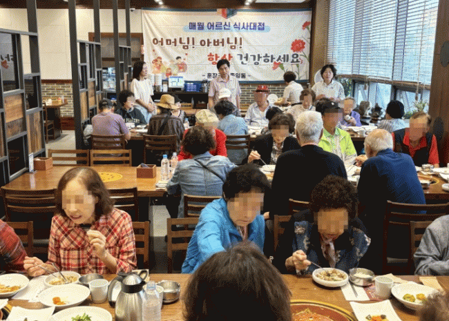 [NWS¹æ¼Û=Çѽ¸ñ ±âÀÚ]¼ö¿ø½Ã ±Ç¼±±¸ È£¸Å½Çµ¿¿¡ À§Ä¡ÇÑ ÈÆÀå°ñ ¼ö¿øÁ¡¿¡¼­´Â 24ÀÏ, Áö¿ª ¾î¸£½Å 50¿© ¸íÀ» ÃÊÃ»ÇØ Á¤¼º ¾î¸° ¿ÀÂùÀ» ´ëÁ¢Çß´Ù. Áö¿ª ¾î¸£½Åµé¿¡°Ô µû¶æÇÑ ÇÑ ³¢ ½Ä»ç¸¦ Á¦°øÇϰíÀÚ ¸Å³â Á¤±âÀûÀÎ ¿ÀÂù ´ëÁ¢À» ½ÇÃµÇØ ¿À¡¦