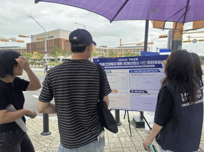 [NWS¹æ¼Û=Çѽ¸ñ ±âÀÚ]½ÃÈï½Ã °ÅºÏ¼¶µ¿ Áö¿ª»çȸº¸ÀåÇùÀÇü´Â Áö³­ 9¿ù 22ÀÏ À¯µ¿ Àα¸°¡ ¸¹Àº ¾ÆÆÄÆ® »ó°¡ ÁÖº¯¿¡¼­ 2026³â °ÅºÏ¼¶µ¿ ¸¶À»°Ç°­º¹Áö°èȹ »ç¾÷ ¼±Á¤À» À§ÇÑ ÁÖ¹ÎÅõÇ¥¸¦ ÁøÇàÇß´Ù. ¡®¸¶À»°Ç°­º¹Áö°èȹ¡¯Àº ÁÖ¹ÎÀÌ Âü¿©¿Í Áö¡¦
