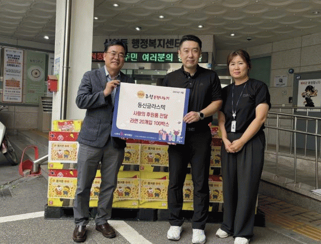 [NWS¹æ¼Û=Çѽ¸ñ ±âÀÚ]½Åõµ¿¿¡ À§Ä¡ÇÑ µ¿½Å±Û¶ó½ºÅØ ÁÖ½Äȸ»ç´Â Áö³­ 9¿ù 23ÀÏ ½Åõµ¿ ÇàÁ¤º¹Áö¼¾Å͸¦ ¹æ¹®ÇØ ¶ó¸é 20°³ÀÔ 100»óÀÚ¸¦ ÈÄ¿øÇß´Ù. À̹ø ÈÄ¿øÇ°Àº ½ÃÈï½Ã1ÆÛ¼¾Æ®º¹ÁöÀç´ÜÀ» ÅëÇØ °ü³» »ýȰÀÌ ¾î·Á¿î ÀÌ¿ôµé¿¡°Ô Àü´ÞµÇ¸ç, ¡¦