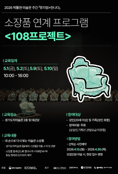[NWS¹æ¼Û=Çѽ¸ñ ±âÀÚ]Çѱ¹µµÀÚÀç´Ü °æ±âµµÀڹ̼ú°üÀÌ ¹Ì¼ú°ü ¼ÒÀåǰÀ» ÀçÇØ¼®Çϰí Á÷Á¢ Á¦ÀÛÇÏ´Â Âü¿©Çü ÇÁ·Î±×·¥ ¡®108ÇÁ·ÎÁ§Æ®¡¯¸¦ 2026 ¹Ú¹°°ü.¹Ì¼ú°ü ÁÖ°£¿¡ ¿î¿µÇϰí, 4¿ù 13ÀϺÎÅÍ Âü¿©ÀÚ¸¦ ¸ðÁýÇÑ´Ù. ¡®108ÇÁ·ÎÁ§Æ®¡¯´Â ¡®¿ÃÇØÀÇ¡¦