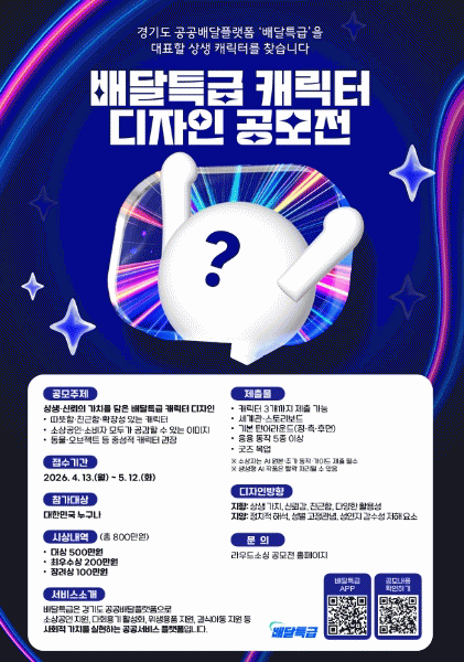 [»çȸ] °æ±âµµ, 5¿ù 12ÀϱîÁö ¹è´ÞƯ±Þ ij¸¯ÅÍ °ø¸ð. ÃÑ»ó±Ý 800¸¸ ¿ø |2026. 04.13