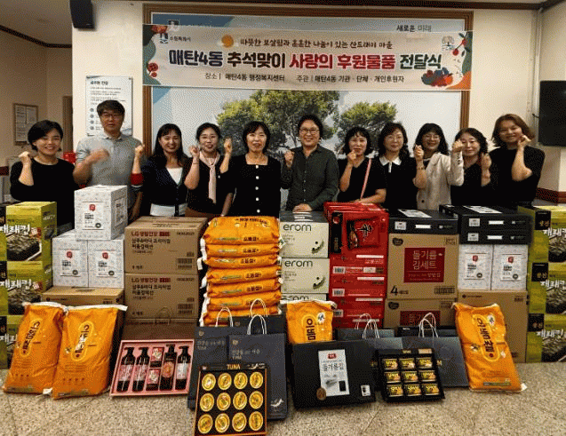[NWS¹æ¼Û=Çѽ¸ñ ±âÀÚ]¼ö¿ø½Ã ¿µÅ뱸 ¸Åź4µ¿ ÇàÁ¤º¹Áö¼¾ÅÍ´Â ¹ÎÁ· °íÀ¯ ¸íÀýÀÎ Ãß¼®À» ¸Â¾Æ °ü³» ¾î·Á¿î ÀÌ¿ô¿¡°Ô µû¶æÇÑ ¸¶À½À» ÀüÇÏ´Â ¡®Ãß¼®¸ÂÀÌ »ç¶ûÀÇ ÈÄ¿ø¹°Ç° Àü´Þ½Ä'À» °³ÃÖÇß´Ù. À̹ø Àü´Þ½Ä¿¡¼­ ¸Åź4µ¿ ÁÖ¹ÎÀÚġȸ µî 9°³ ´Ü¡¦