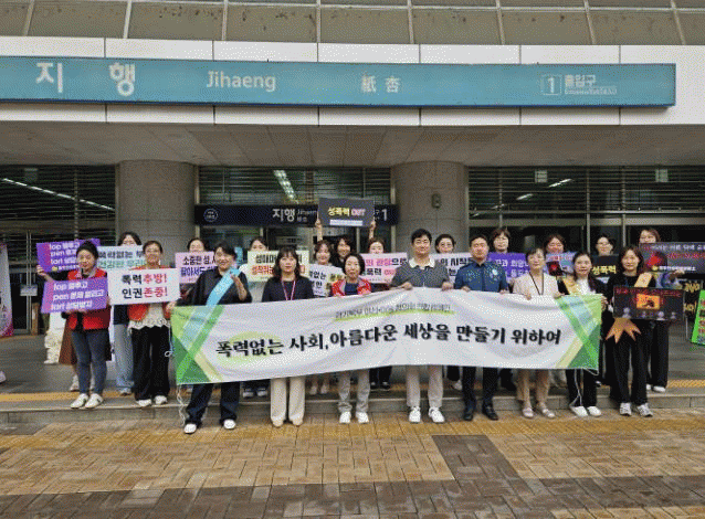 [NWS¹æ¼Û=Çѽ¸ñ ±âÀÚ]µ¿µÎõ½Ã¿Í µ¿µÎõ¼ºÆø·Â»ó´ã¼Ò, °æ±âºÏºÎ¿©¼º¡¤¾Æµ¿ÇùÀÇȸ´Â 9¿ù 19ÀÏ ÁöÇ࿪ ¾Õ¿¡¼­ ¿©¼º¡¤¾Æµ¿ Æø·Â ¿¹¹æ ÇÕµ¿ Ä·ÆäÀÎÀ» ÆîÃÆ´Ù. À̹ø Ä·ÆäÀÎÀº Æø·Â ¾ø´Â »çȸ¸¦ ¸¸µé°í ½Ã¹ÎÀÌ ¾ÈÀüÇϰí ÇູÇÏ°Ô »ì¾Æ°¥ ¼ö ÀÖ¡¦