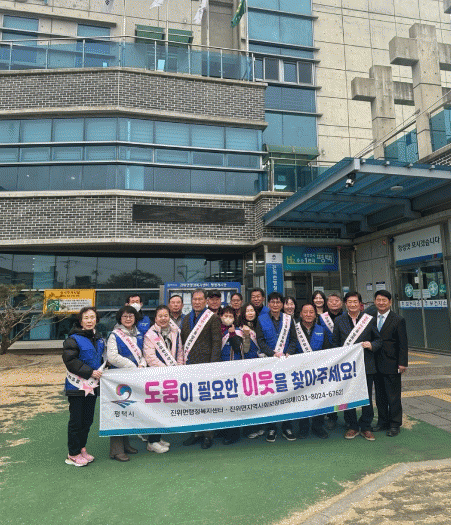 [NWS¹æ¼Û=Çѽ¸ñ ±âÀÚ]ÆòÅýà ÁøÀ§¸é Áö¿ª»çȸº¸ÀåÇùÀÇü´Â 24ÀÏ ÁøÀ§¸é ÇàÁ¤º¹Áö¼¾ÅÍ 1Ãþ ÀÔ±¸¿¡¼­ ¡®º¹Áö »ç°¢Áö´ë À§±â°¡±¸ ¹ß±¼¡¯À» À§ÇÑ È«º¸ ºÎ½º¸¦ ¼³Ä¡Çϰí Ä·ÆäÀÎÀ» ÁøÇàÇß´Ù. À̳¯ ÇùÀÇü À§¿øµéÀº ¾î·Á¿î °æÁ¦ ¿©°ÇÀ¸·Î ¾î·Á¡¦