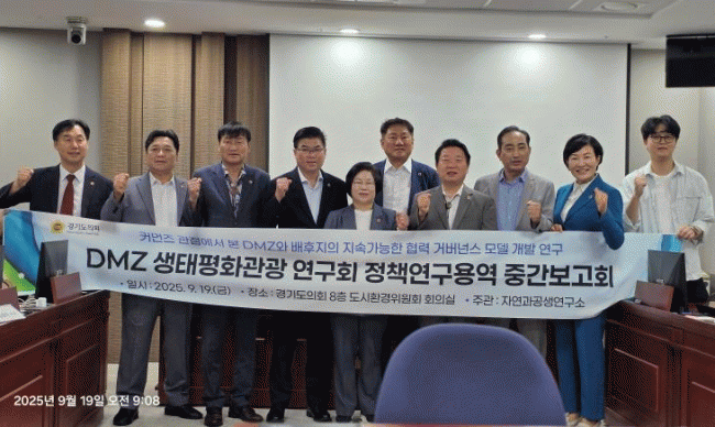 [Áö¿ªÁ¤Ä¡] °æ±âµµÀÇȸ ¿ÀÁØÈ¯ ÀÇ¿ø, DMZ»ýÅÂÆòÈ­°ü±¤ ¿¬±¸È¸ 'ÁÖ¹ÎÁÖµµÇü DMZ °³¹ß¡¤°ü¸® ¸ðµ¨ ¿¬±¸' Áß°£º¸°íȸ °³ÃÖ |2025. 09.22