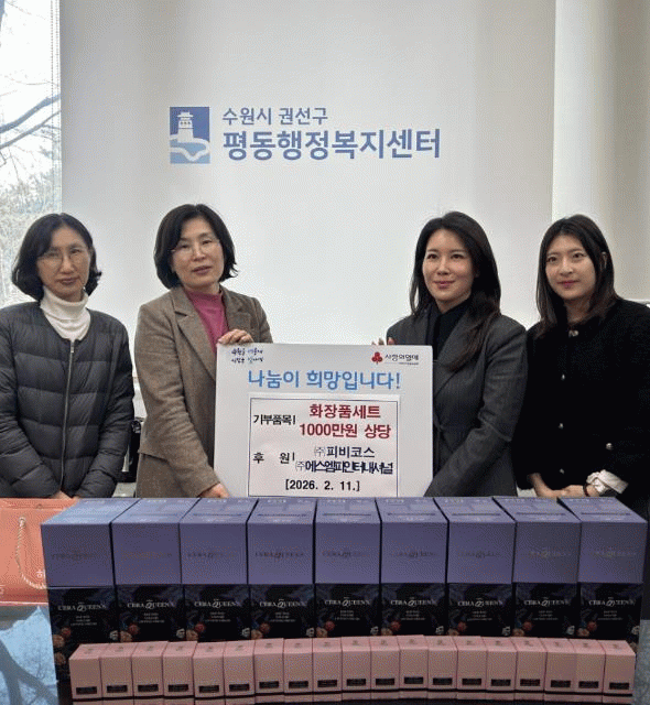 [NWS¹æ¼Û=Çѽ¸ñ ±âÀÚ]Áö³­ 11ÀÏ, ±Ç¼±±¸ Æòµ¿ ÇàÁ¤º¹Áö¼¾ÅÍ´Â ¢ßÇǺñÄÚ½º¿Í ¢ß¿¡½º¿¥ÇÇÀÎÅͳ»¼Å³ÎÀÌ ¾à 1õ¸¸ ¿ø »ó´çÀÇ ¼¼·³¡¤Å©¸²¡¤¼±Å©¸² µî È­Àåǰ¼¼Æ®¸¦ °øµ¿ ±âºÎÇß´Ù°í ¹àÇû´Ù. ¢ßÇǺñÄÚ½º´Â È­Àåǰ ¿ë±â Á¦Á¶ Àü¹® ±â¾÷À̰í, ¢ß¡¦