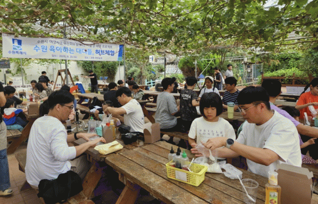 [NWS¹æ¼Û=Çѽ¸ñ ±âÀÚ]¼ö¿ø½Ã°¡ 20ÀÏ ¿øÆò Çãºê³ó¿ø(È­¼º½Ã ¸Å¼Û¸é)¿¡¼­ ¡®¼ö¿ø À°¾ÆÇÏ´Â ´ëµðµé(¼öÀ°´ë)¡¯ ¼¼ ¹øÂ° ¿ÀÇÁ¶óÀΠȰµ¿À» ¿î¿µÇß´Ù. ¾Æºü¿Í ÀÚ³à 80°¡Á·Àº Çãºê Çâ±â ¸Ã±â, Çãºê ºñ´© ¸¸µé±â µî ´Ù¾çÇÑ Ã¼Çè ÇÁ·Î±×·¥¿¡ Âü¿©¡¦