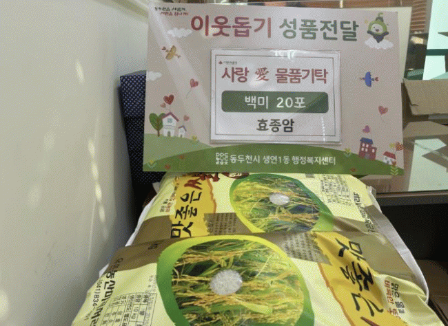 [NWS¹æ¼Û=Çѽ¸ñ ±âÀÚ]µ¿µÎõ½Ã ¼Ò¿äµ¿ ÇàÁ¤º¹Áö¼¾ÅÍ´Â Áö³­ 3ÀÏ °ü³» ¾÷üÀÎ ¿ì¼ºÇÇÇõÀ¸·ÎºÎÅÍ ¼³ ¸íÀýÀ» ¸Â¾Æ ¼Ò¿Ü°èÃþ °¡±¸¿¡ Àü´ÞÇÒ ¹é¹Ì 10kg 100Æ÷¸¦ ±âŹ¹Þ¾Ò´Ù°í ¹àÇû´Ù. ¿ì¼ºÇÇÇõ Á¤¼ÒÇö ´ëÇ¥´Â ¼Ò¿äµ¿ ÁÖ¹ÎÀÚÄ¡À§¿øÈ¸ »ç¹«±¹À塦