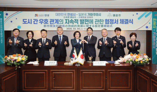 [NWS¹æ¼Û=Çѽ¸ñ ±âÀÚ]¾È¼º½Ã´Â 2026³â 3¿ù 4ÀÏ ¿ÀÀü 11½Ã ¾È¼º½Ãû º»°ü 2Ãþ »óȲ½Ç¿¡¼­ ÀϺ» °¡³ª°¡¿ÍÇö °¡¸¶Äí¶ó½Ã(½ÃÀå ¸¶¾²¿À ´ÙÄ«½Ã)¿Í 'µµ½Ã °£ ¿ìÈ£ °ü°èÀÇ Áö¼ÓÀû ¹ßÀü¿¡ ´ëÇÑ ÇùÁ¤'À» ü°áÇÏ°í ¾ç µµ½Ã °£ ¹®È­¡¤¿¹¼ú ¹× û¼Ò³â¡¦
