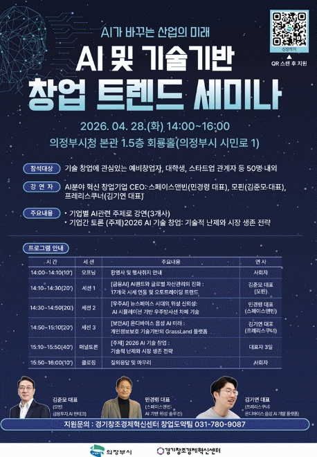 [NWS¹æ¼Û=Çѽ¸ñ ±âÀÚ]ÀÇÁ¤ºÎ½Ã´Â ¡®2026 ÷´Ü»ê¾÷ ½ºÄÉÀϾ÷¡¯ »ç¾÷ÀÇ ÀÏȯÀ¸·Î 4¿ù À媽º(In-depth) ³×Æ®¿öÅ·°ú AI?±â¼ú±â¹Ý â¾÷ Æ®·»µå ¼¼¹Ì³ª¸¦ °³ÃÖÇϰí Âü¿© ±â¾÷°ú ½Ã¹ÎÀ» ¸ðÁýÇÑ´Ù. Àü¹®°¡ ¸ÂÃãÇü ÄÁ¼³ÆÃÀ» Á¦°øÇÏ´Â ¡®À媽º ¡¦