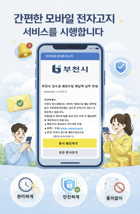 [»çȸ] ºÎõ½Ã, īī¿ÀÅå ü³³¾È³»¹® ¹ß¼Û¡¦¸ð¹ÙÀÏ ÀüÀÚ°íÁö ½ÃÇà |2026. 04.20