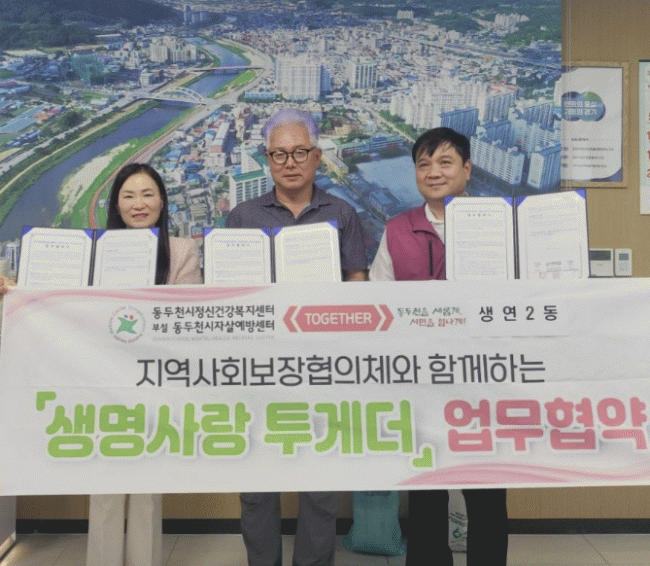 [NWS¹æ¼Û=Çѽ¸ñ ±âÀÚ]µ¿µÎõ½ÃÁ¤½Å°Ç°­º¹Áö¼¾ÅÍ ºÎ¼³ Àڻ쿹¹æ¼¾ÅÍ´Â ¡®»ý¸í»ç¶û Åõ°Ô´õ¡¯»ç¾÷ ÃßÁøÀ» À§ÇØ Áö³­ 17ÀÏ, »ý¿¬2µ¿ ÇàÁ¤º¹Áö¼¾ÅÍ ¹× »ý¿¬2µ¿ Áö¿ª»çȸº¸ÀåÇùÀÇü¿Í ¾÷¹«Çù¾àÀ» ü°áÇß´Ù. ¡®»ý¸í»ç¶û Åõ°Ô´õ¡¯´Â ÇØ´ç µ¿ÀÇ¡¦