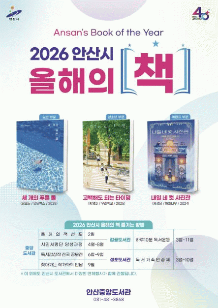 [»çȸ] ¾È»ê½Ã, 2026³â ¿ÃÇØÀÇ Ã¥ ¼±Á¤¡¦ 6¿ùºÎÅÍ µ¶¼­°¨»óÀÛ °ø¸ð |2026. 02.12