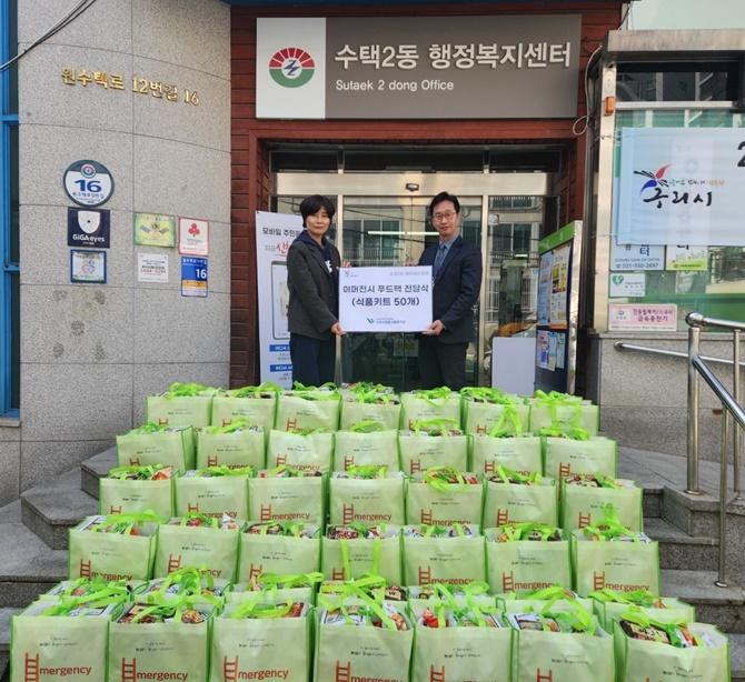 (NWS¹æ¼Û=±èÂ÷¿µ±âÀÚ)4¿ù 4ÀÏ(±Ý), ±¸¸®½ÃÁ¾ÇÕ»çȸº¹Áö°ü(°üÀå ±è¼ºÀÏ)Àº ¼öÅÃ2µ¿ÇàÁ¤º¹Áö¼¾ÅÍ(µ¿Àå Ç¥¿µ½Ç)¿¡ ÀÌ¿ôµ½±â ¹°Ç°À¸·Î À̸ÓÀü½Ã ǪµåÆÑ 5¼¼Æ®¸¦ Àü´ÞÇß´Ù. À̸ÓÀü½Ã ǪµåÆÑÀº ¿µ¾ç°¡ ÀÖ´Â ½ÄǰÀ¸·Î ±¸¼ºµÇ¾î Àç³­¡¤ÀçÇØ µî¡¦