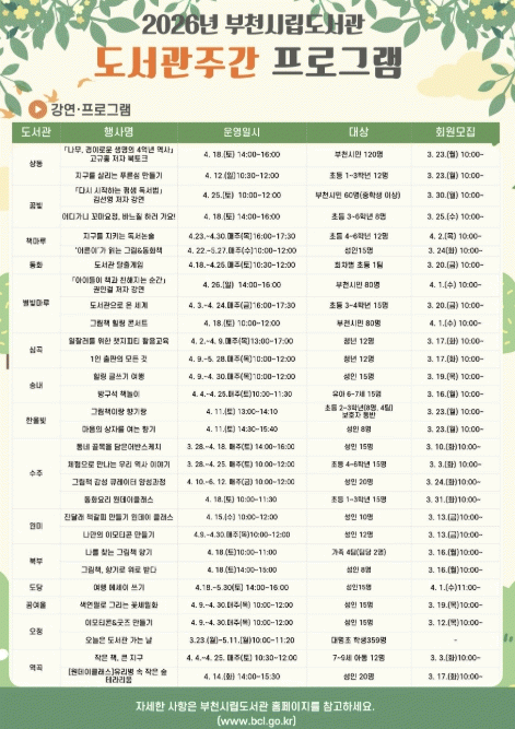[»çȸ] ºÎõ½Ã, 4¿ù 'µµ¼­°ü ÁÖ°£' ¸Â¾Æ ½Ã¹Î Âü¿© ÇÁ·Î±×·¥ ¿î¿µ |2026. 03.25