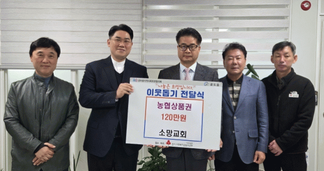 [NWS¹æ¼Û=Çѽ¸ñ ±âÀÚ]°øµµ Áø»ç¸® ¼ÒÀç ¼Ò¸Á±³È¸´Â Áö³­ 14ÀÏ °øµµÀ¾ÇàÁ¤º¹Áö¼¾ÅÍ¿¡ ¹æ¹®ÇØ Áö¿ª ¾î·Á¿î ÀÌ¿ôÀ» µ½±â À§ÇÑ ³óÇù »óǰ±Ç 120¸¸ ¿ø(5¸¸ ¿ø±Ç 24¸Å)À» ±âŹÇß´Ù. ¹è¼ºÀ± ´ãÀÓ¸ñ»ç´Â ¡°ÀÛÀº Á¤¼ºÀÌÁö¸¸ ¾î·Á¿î ÀÌ¿ôµé¿¡°Ô µû¡¦