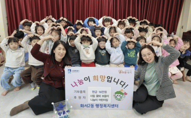 [NWS¹æ¼Û=Çѽ¸ñ ±âÀÚ]¼ö¿ø½Ã ÆÈ´Þ±¸ È­¼­2µ¿ ¼ÒÀç ½Ã¸³²É¸þº¸µëÀ̳ª´®À̾ÀÌÁýÀº Áö³­ 23ÀÏ, ¿ø¾Æ¿Í Çкθð, ±³Á÷¿øÀÌ ÇÔ²² ¸¶·ÃÇÑ ¹ÙÀÚȸ ¼öÀÍ±Ý 16¸¸ ¿øÀ» Áö¿ª ³» ¾î·Á¿î ÀÌ¿ôÀ» À§ÇØ »ç¿ëÇØ ´Þ¶ó¸ç È­¼­2µ¿ ÇàÁ¤º¹Áö¼¾ÅÍ¿¡ ±âŹÇß¡¦